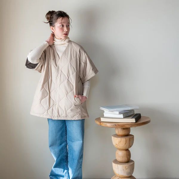 軽い着心地と、小さくたためるパッカブル仕様が特徴のはんてん型の羽織りです。家族やパートナーと兼用もできるサイズ展開です。