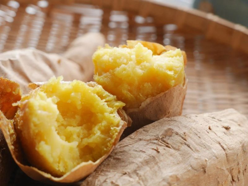 皮が白く、中は鮮やかな黄色(黄金色)をしている - やみつきになる甘み